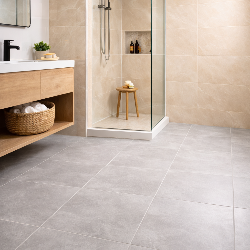 Pardoseli de gresie în baie, bucătărie și balcon